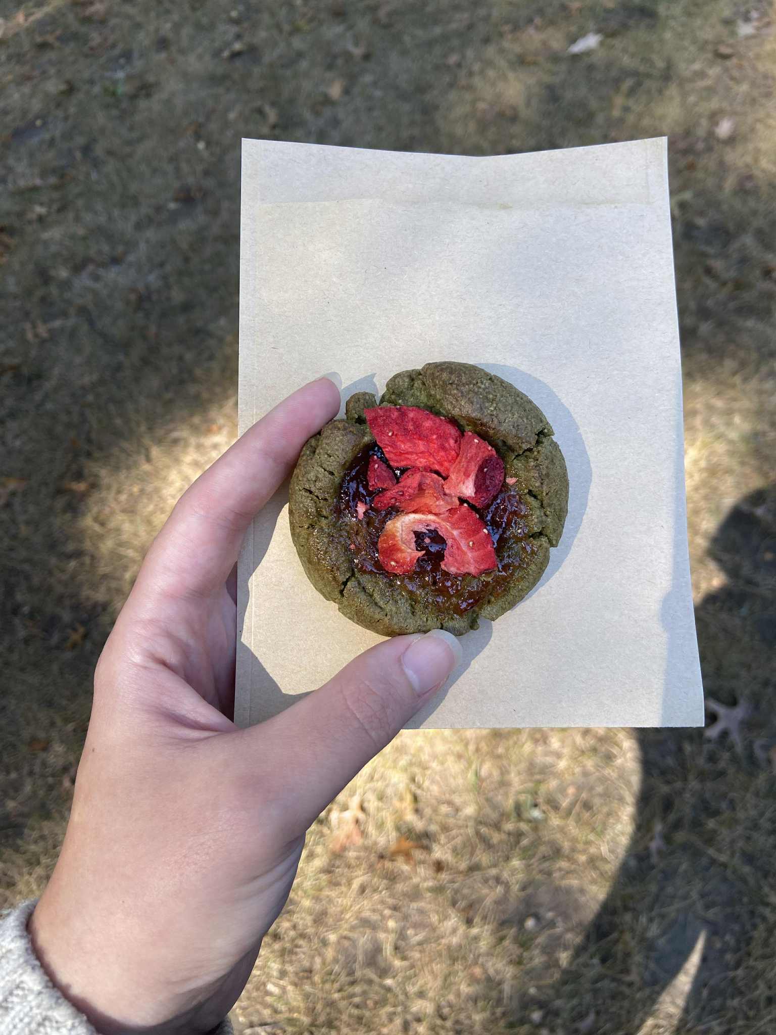 a free yoga class and a farmer's market are hosted here every sunday; on 9/28/25 I had a yummy matcha strawberry cookie from love so sweet